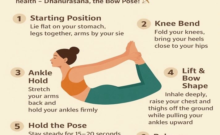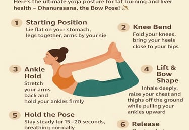 “Dhanurasana boosts metabolism, strengthens liver and kidneys, improves digestion, and is one of the best yoga poses for fat burning and core strength.”“ Just 5 minutes of Bow Pose daily can transform your liver health, burn belly fat, and supercharge your energy!